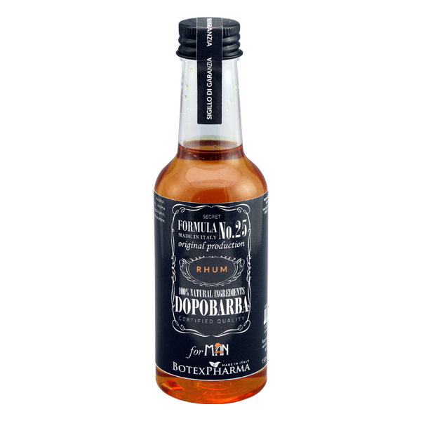 Dopobarba al Rum alcol etilico, aroma al rum, acqua, glicerina vegetale, conservante naturale