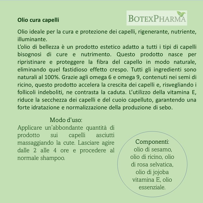 Olio Cura Capelli 10 ml, rigenerante, nutriente, illuminante.
