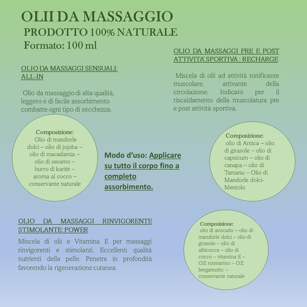 - Modo d' uso: Applicare su tutto il corpo e massaggiare fino a completo assorbimento.
