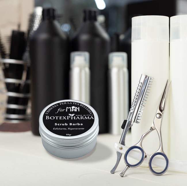 - Proprietà: Lo scrub per barba Botexpharma ha all’interno micro-granuli che permettono una corretta esfoliazione